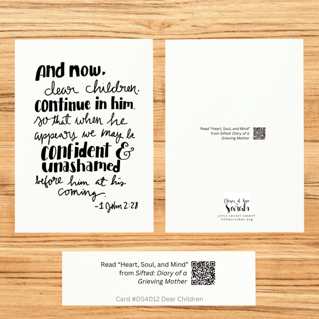 While the message of love and hope you include in your card will certainly be the highlight, we hope the QR code-linked excerpts of Sifted featured on the back of our cards will also be a source of encouragement.